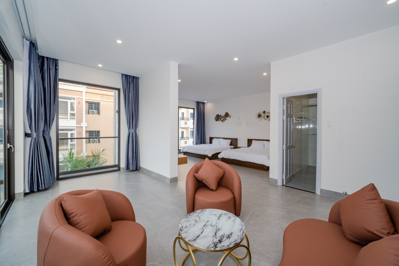 (5 phòng đôi và 5 phòng đơn). Có 2 phòng ngủ master rộng 65m2/phòng + Miễn Phí 1 phòng hát karaoke rộng 40m2