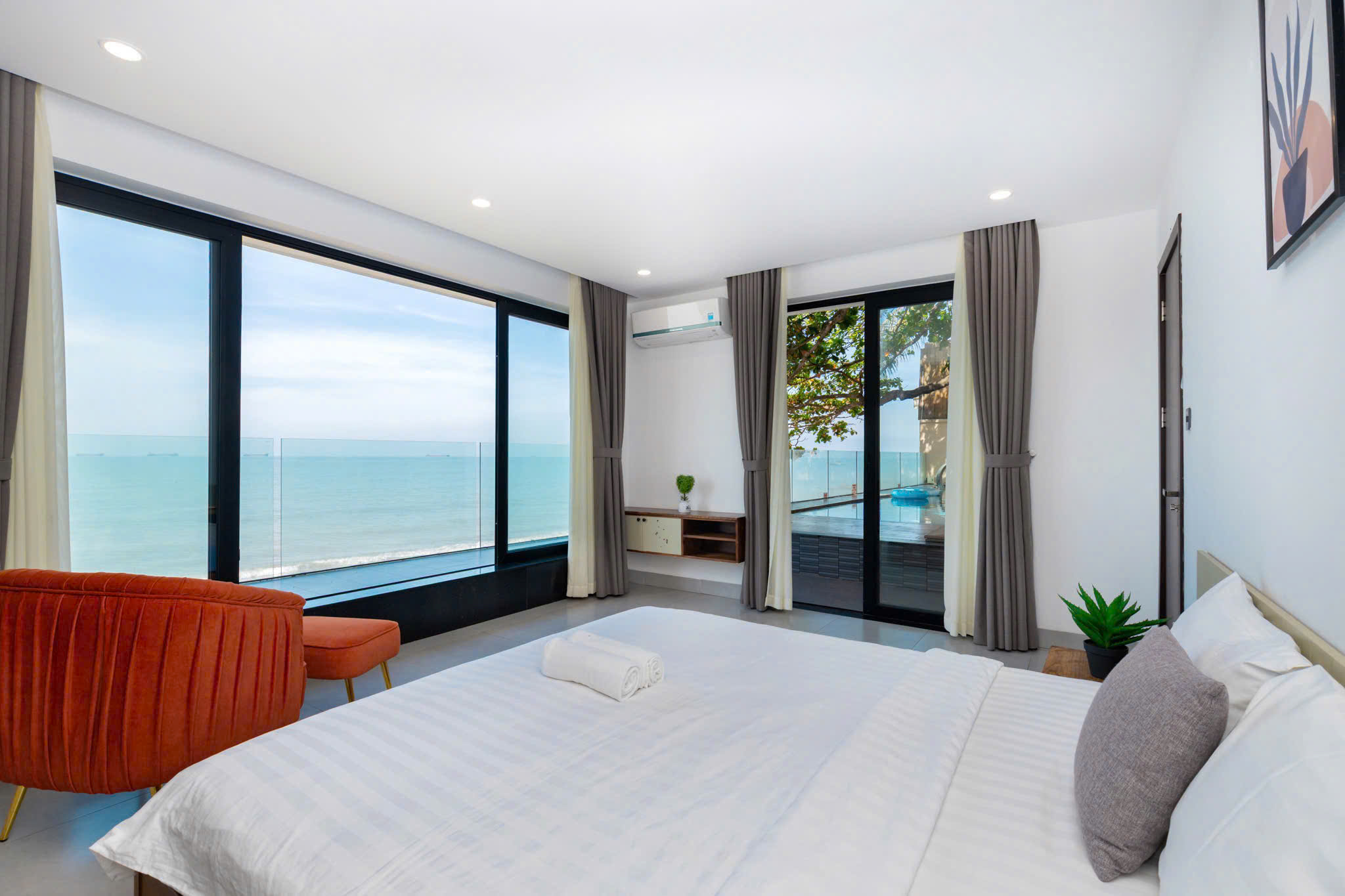 Villa View Biển ngập tràn, ngắm hoàng hôn bình minh thì đê mê quên lối về, các phòng ngủ của Tùng Villa 109 Sát Biển đều có tầm nhìn view biển.