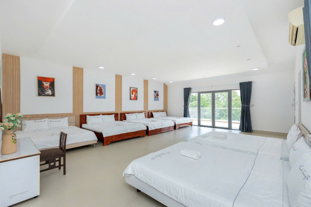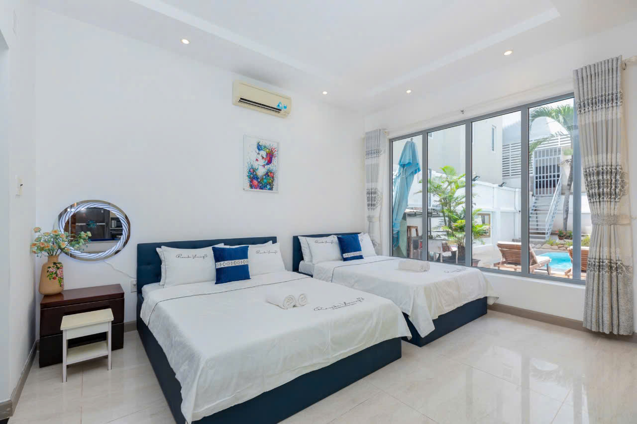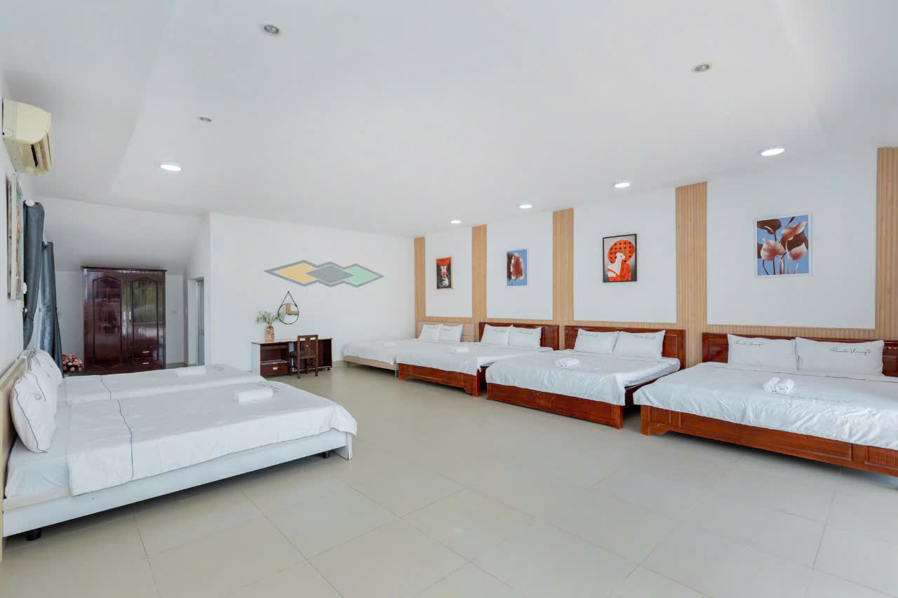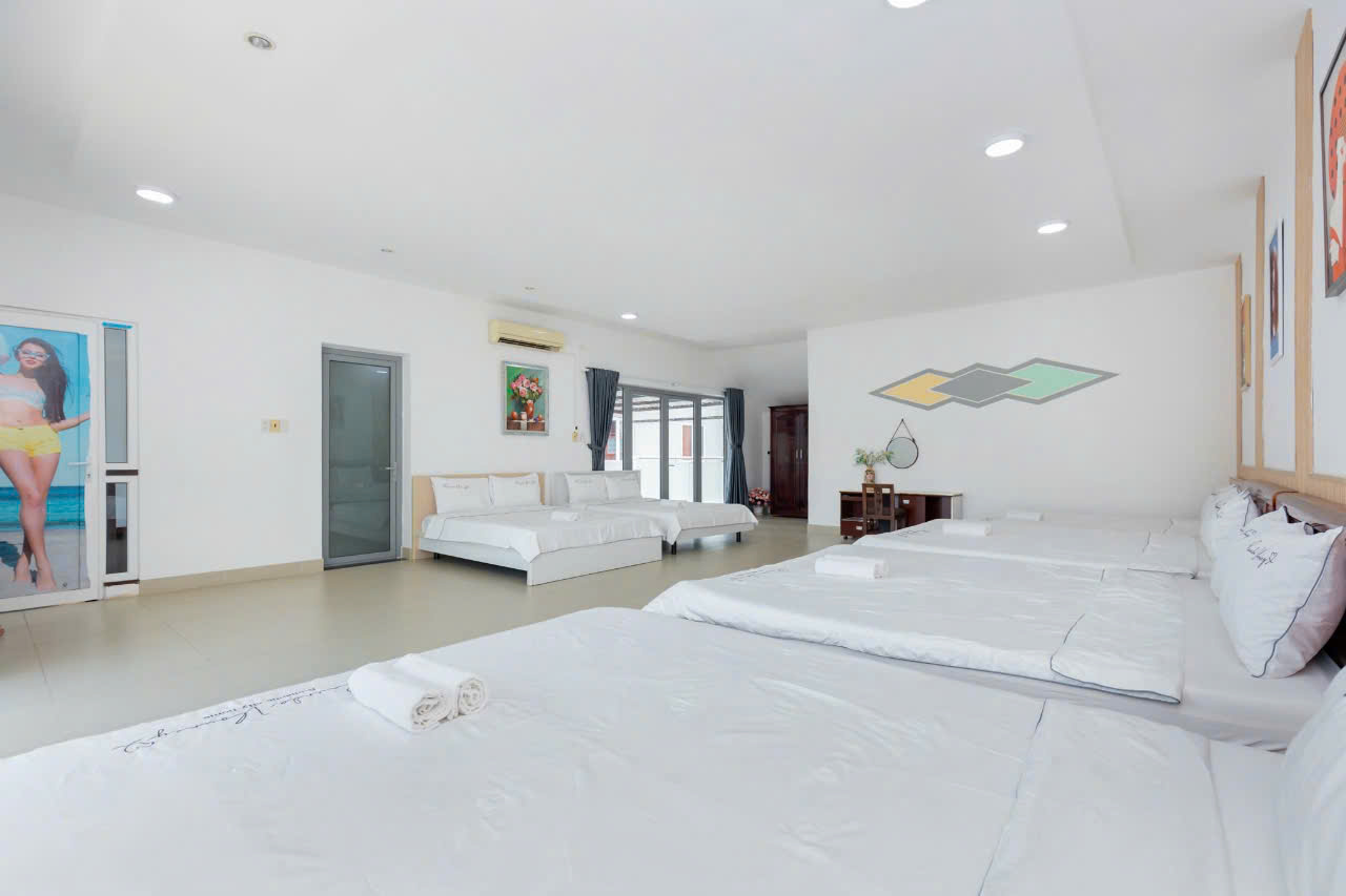 – Villa có 1 trệt 2 lầu 5 phòng ngủ, 12 giường, 6WC :