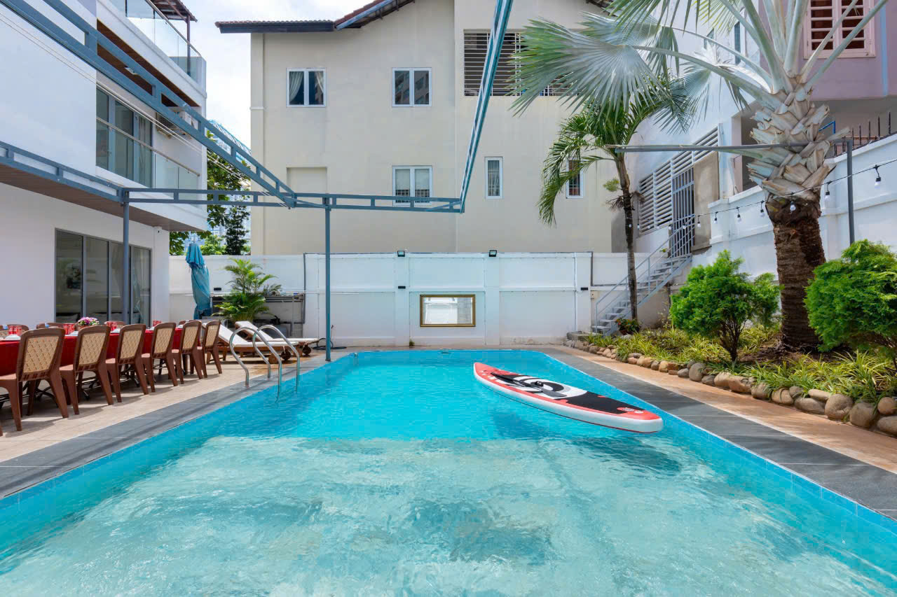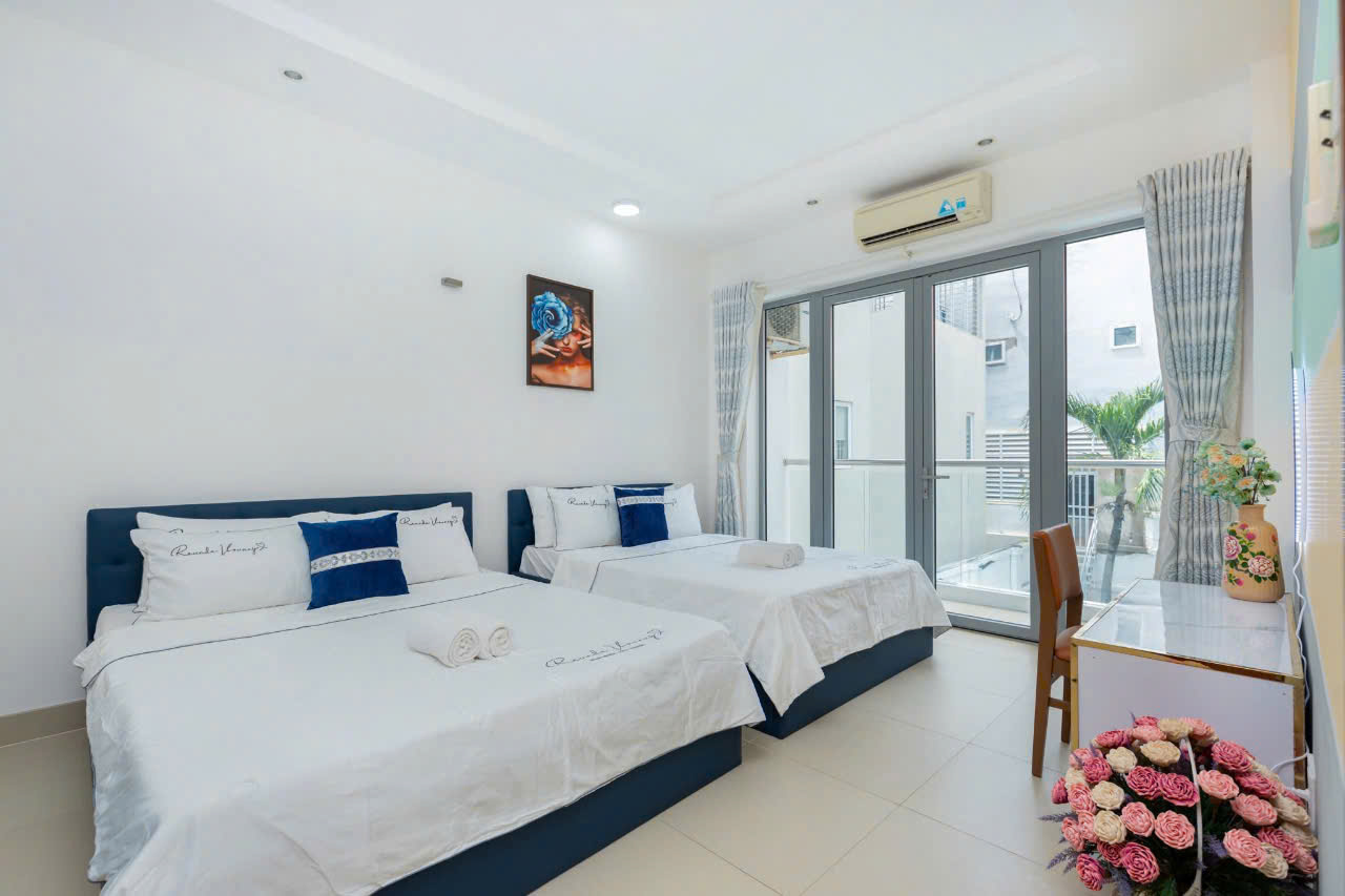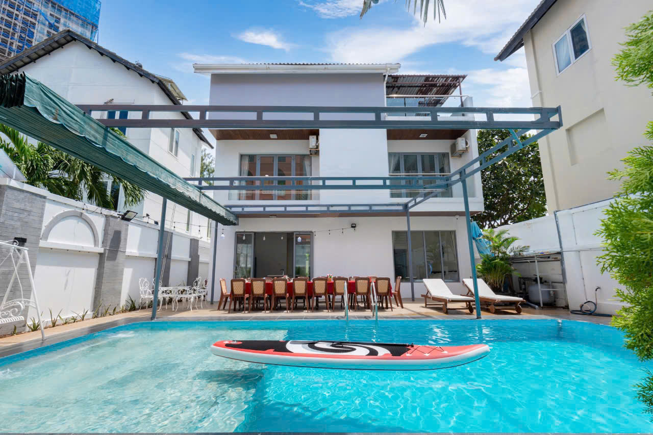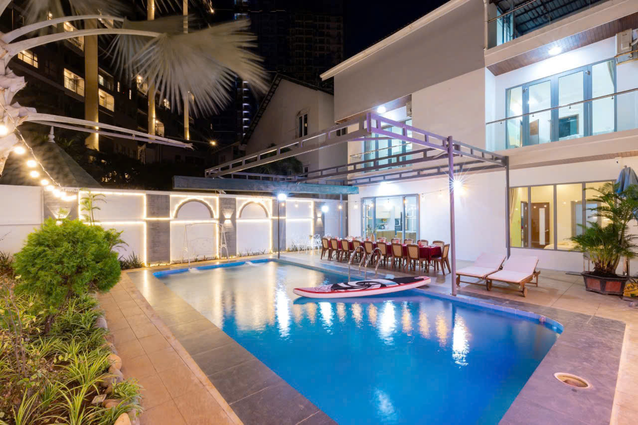 – Villa có 1 trệt 2 lầu 5 phòng ngủ, 12 giường, 6WC :