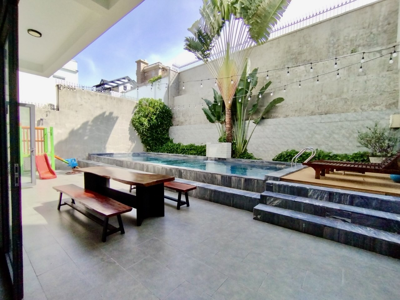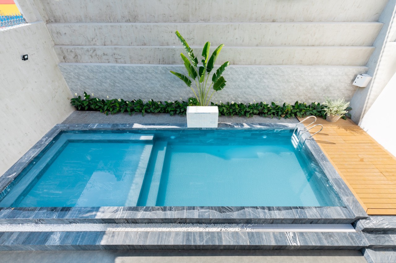 – Hồ Bơi rộng 50m2, có thác nước, bồn massage ngoài trời kết hợp hồ trẻ em.