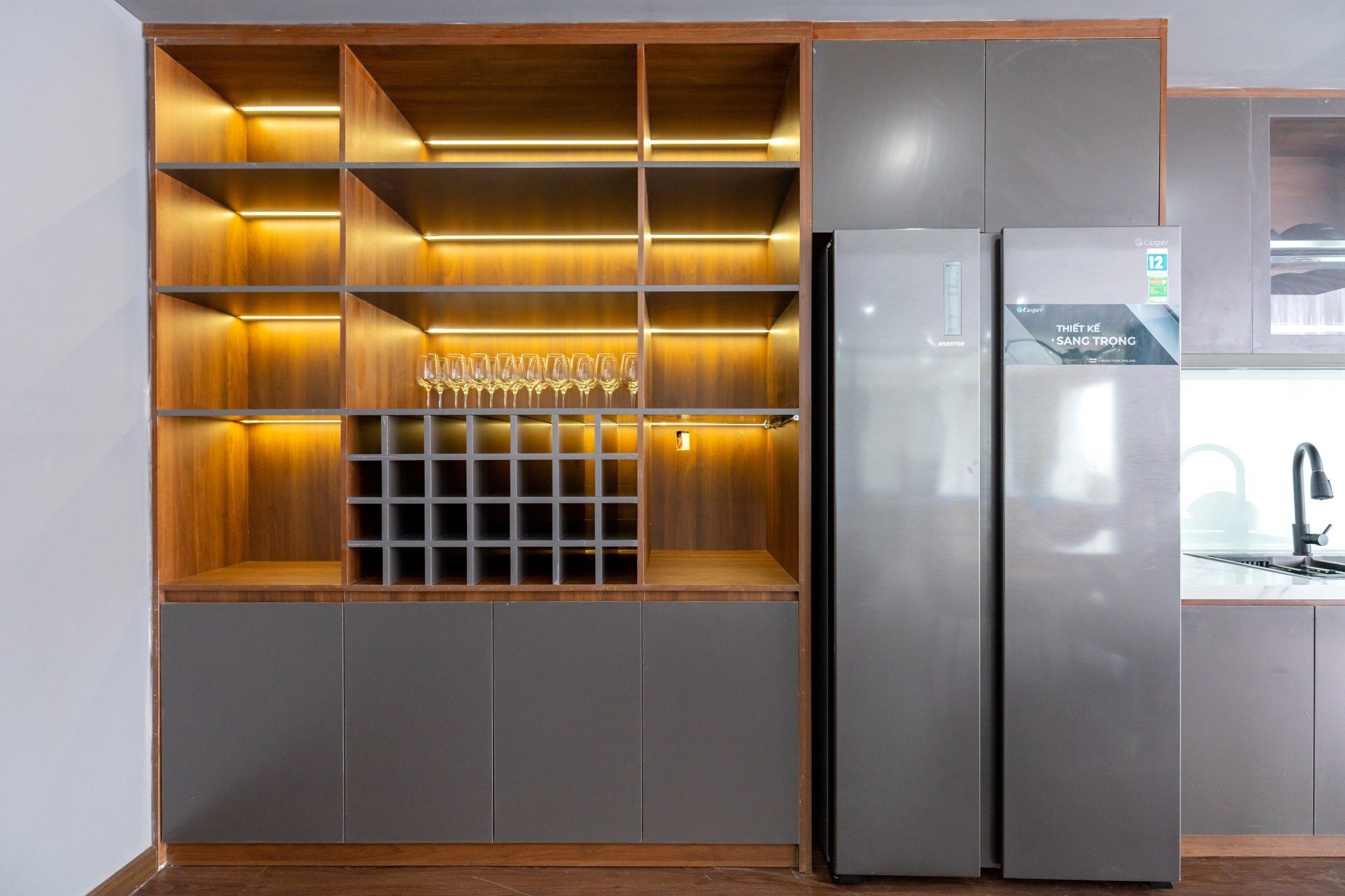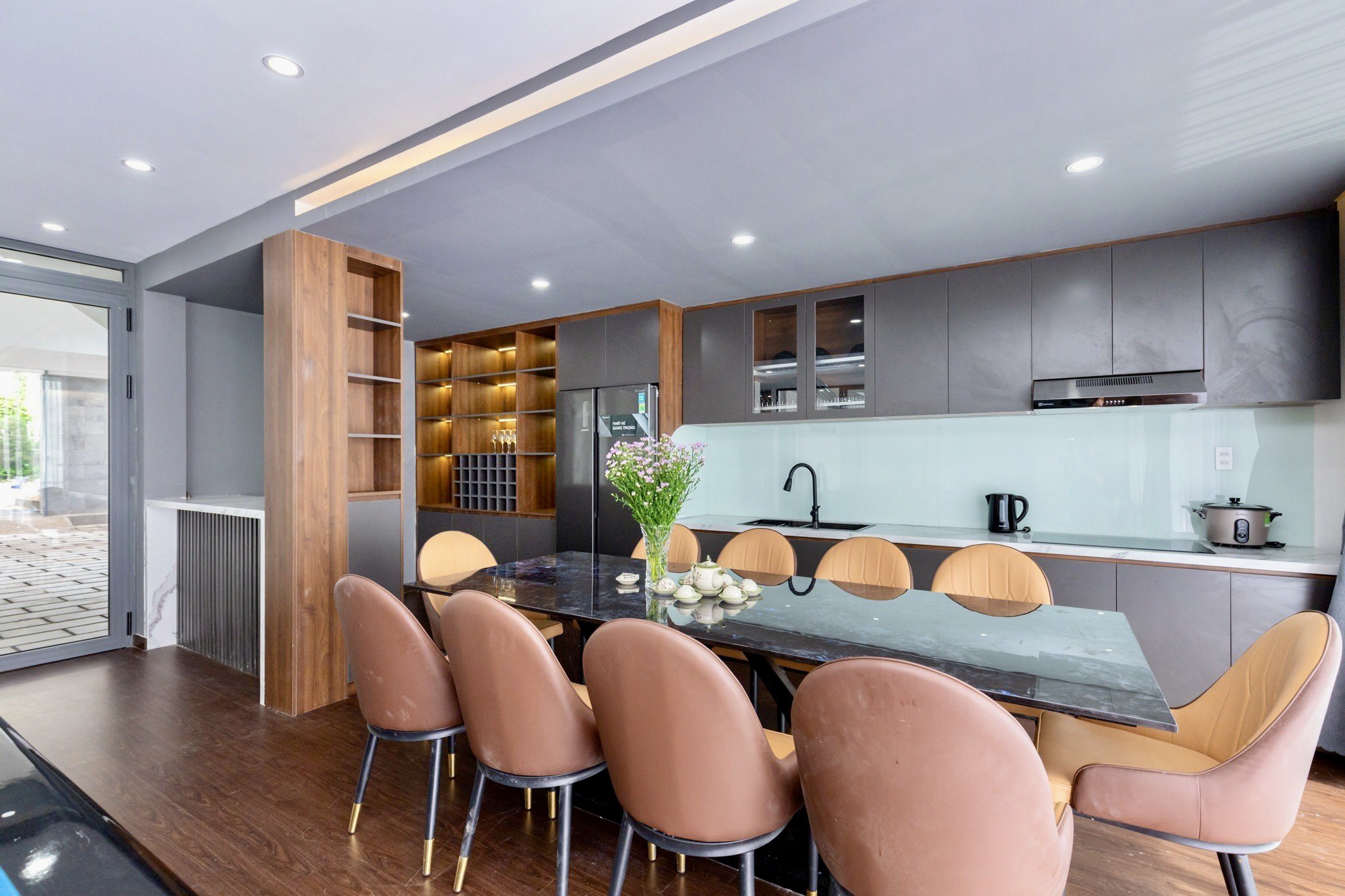 Không gian bếp đầy đủ tiện nghi, bài trí theo phong cách hiện đại