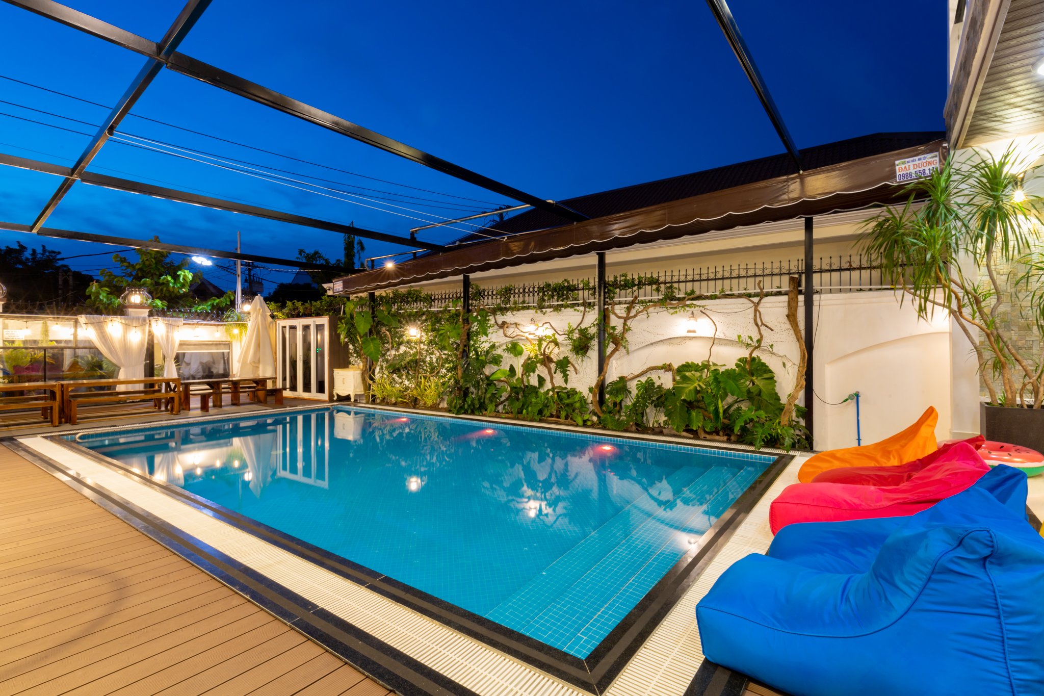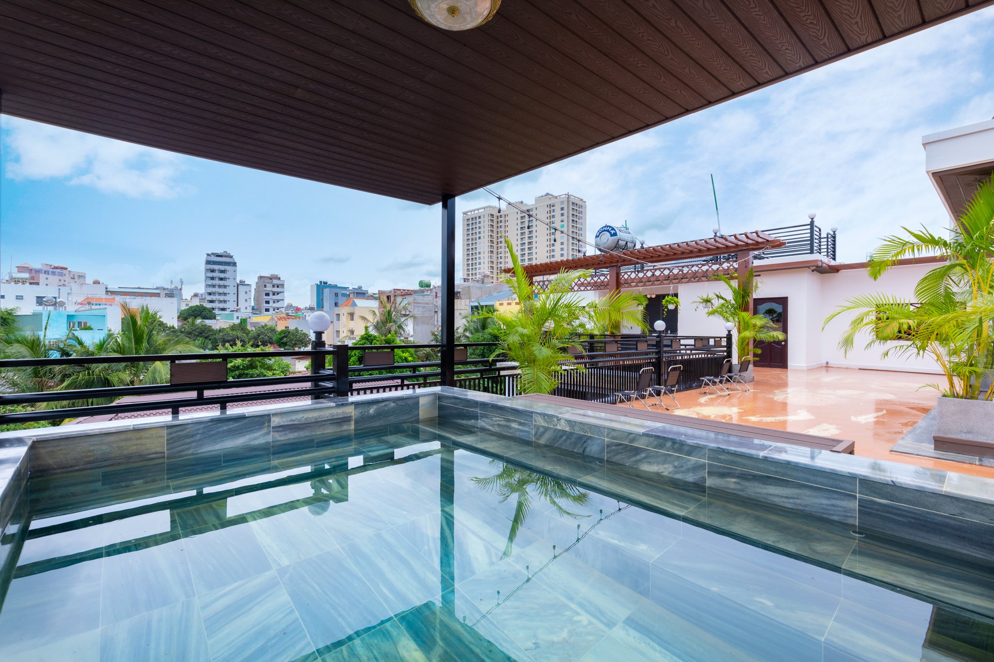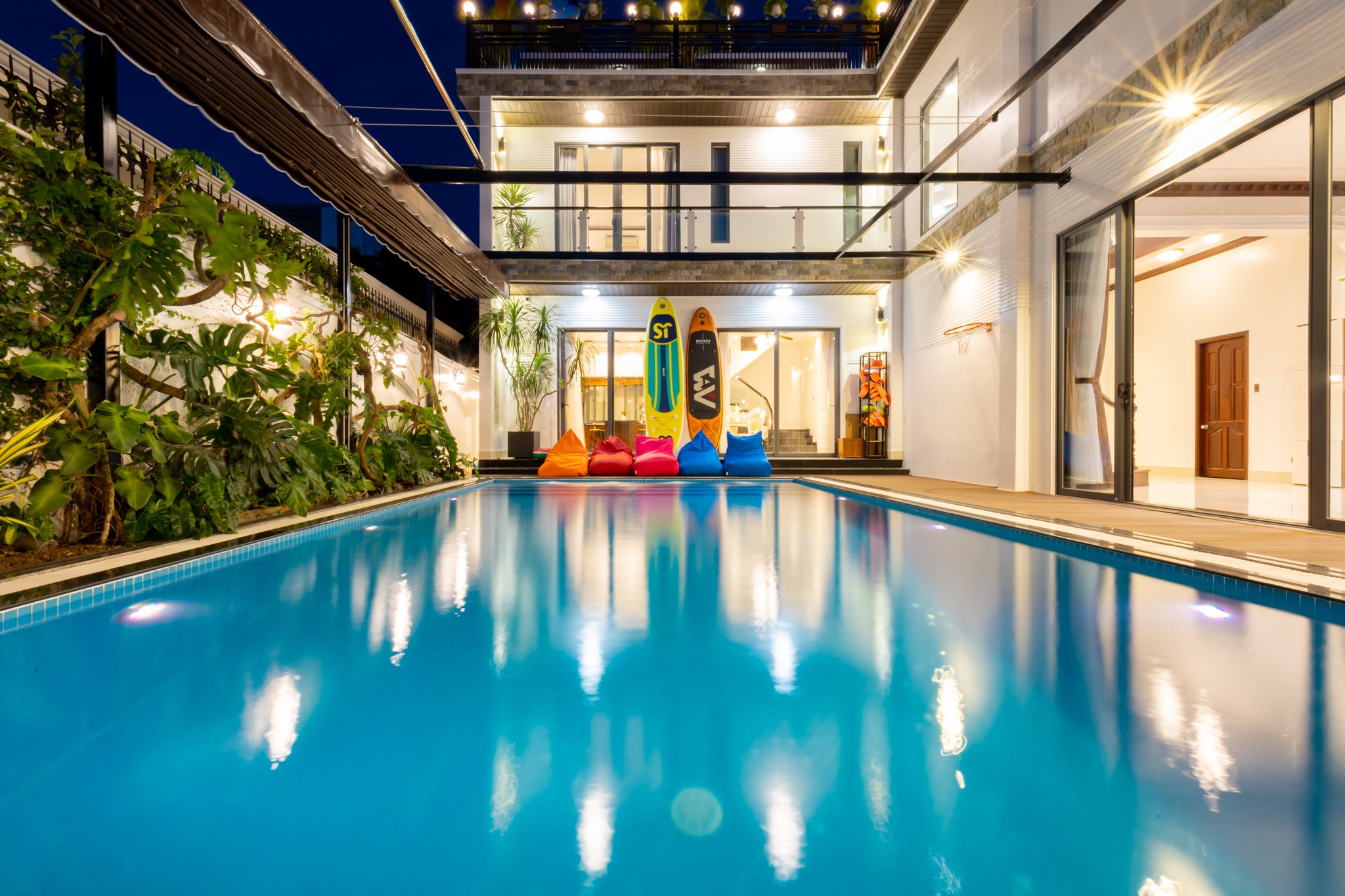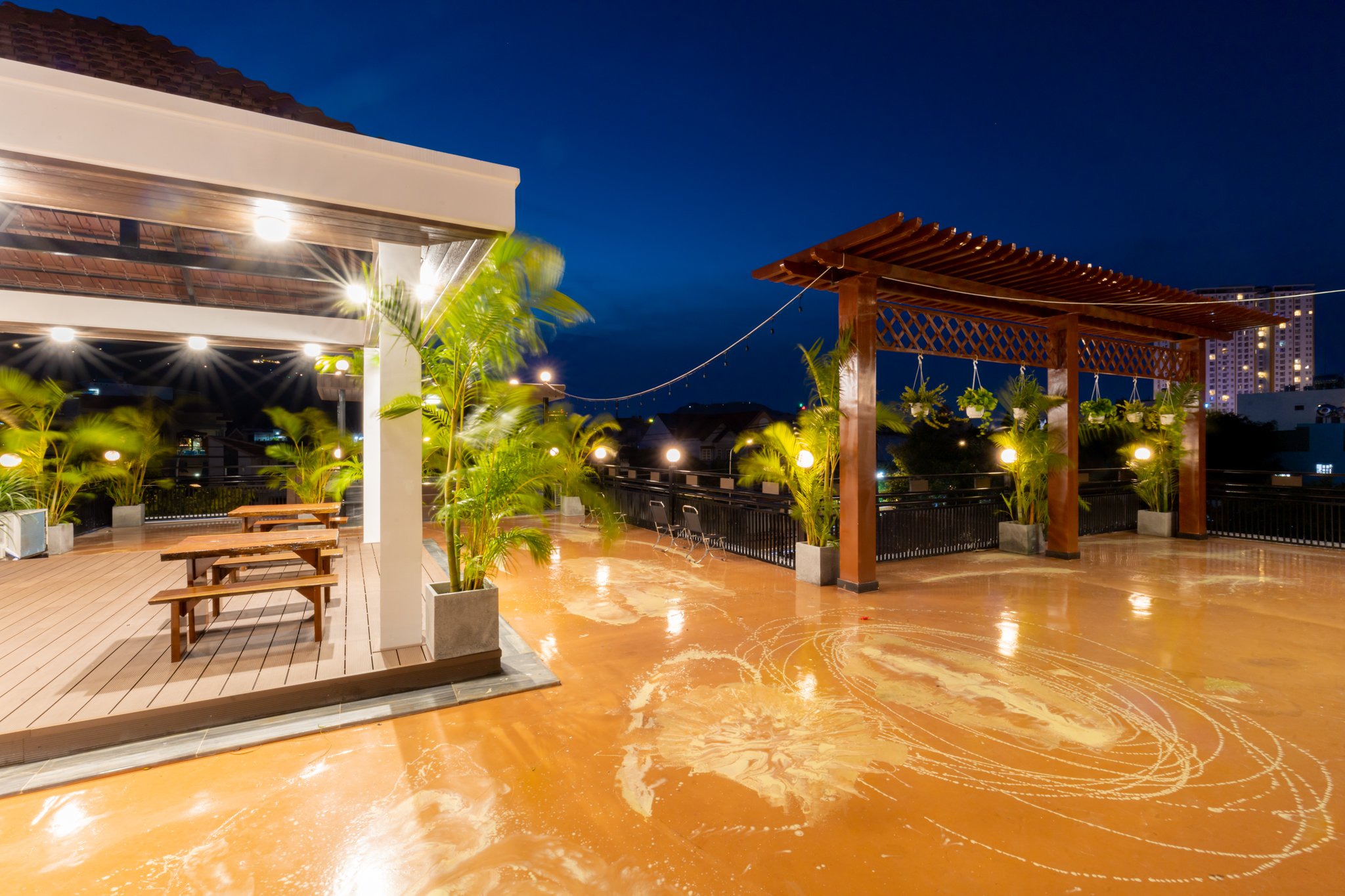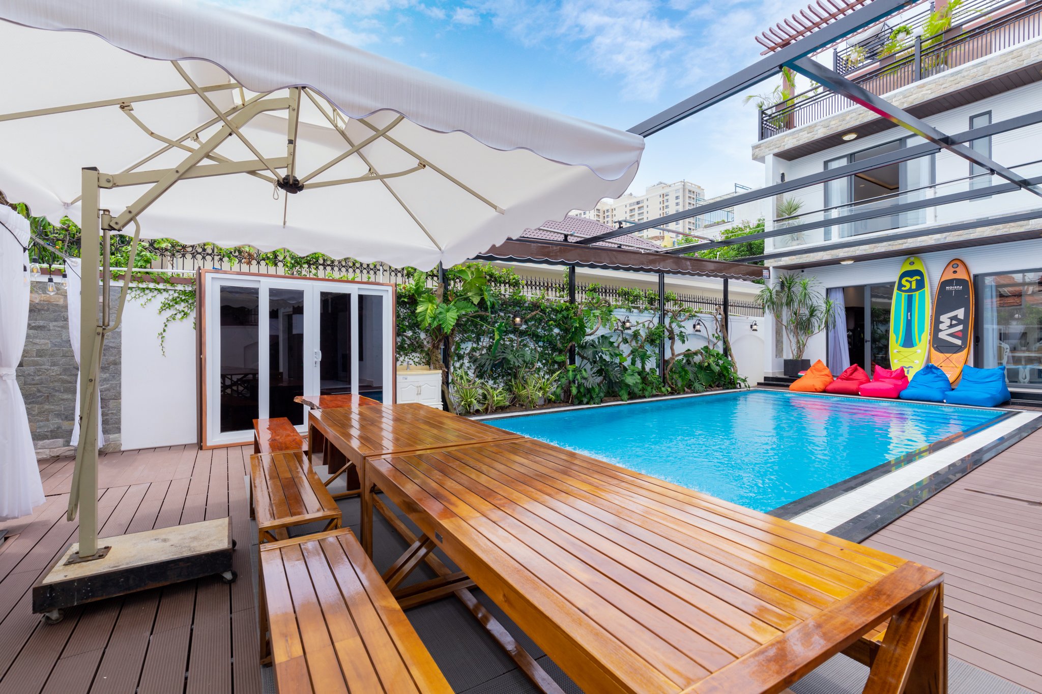 – Không gian BBQ ngoài trời, bên cạnh hồ bơi chính