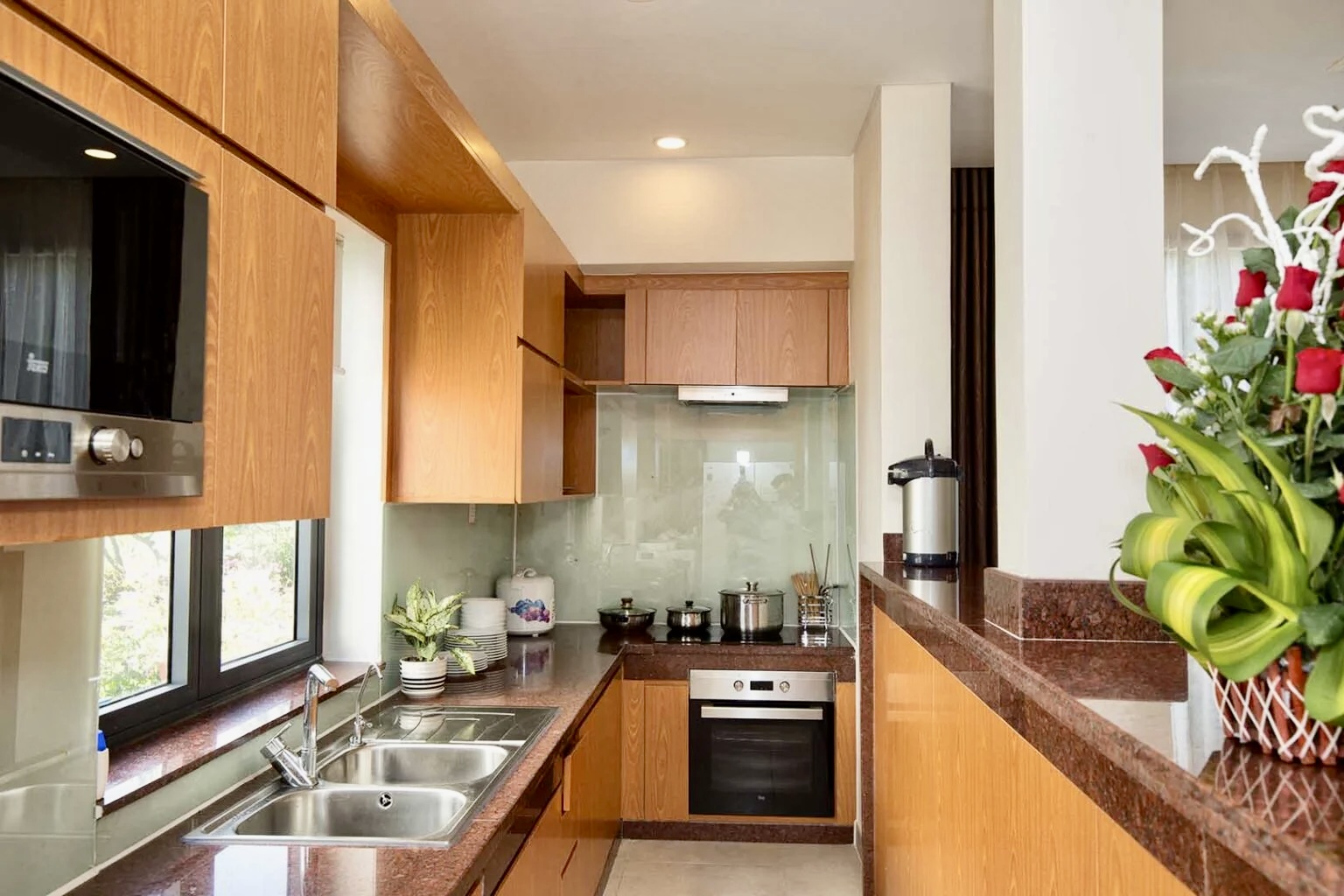 1 phòng khách, 1 nhà bếp không gian mở, trang bị đầy đủ tiện nghi – dụng cụ nấu ăn