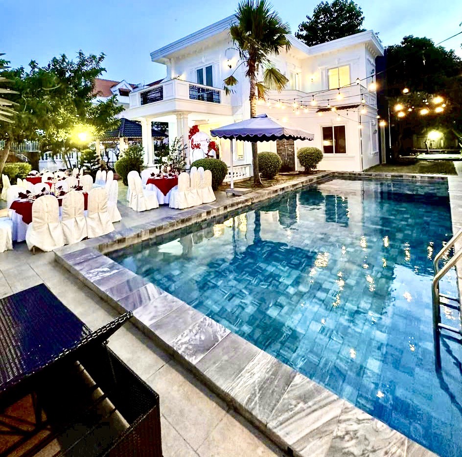 – Villa kết hợp giữa hồ bơi sân vườn rộng tuyệt đẹp , là nơi bạn có thể tổ chức những buổi Tiệc BBQ ngoài trời với sức chứa lên tới hơn 80 người, không gian hoàn hảo để thưởng thức hải sản, khiêu vũ, vui chơi ca hát cùng bạn bè với hệ thống ánh sáng được đầu tư công phu, tỉ mỉ.
