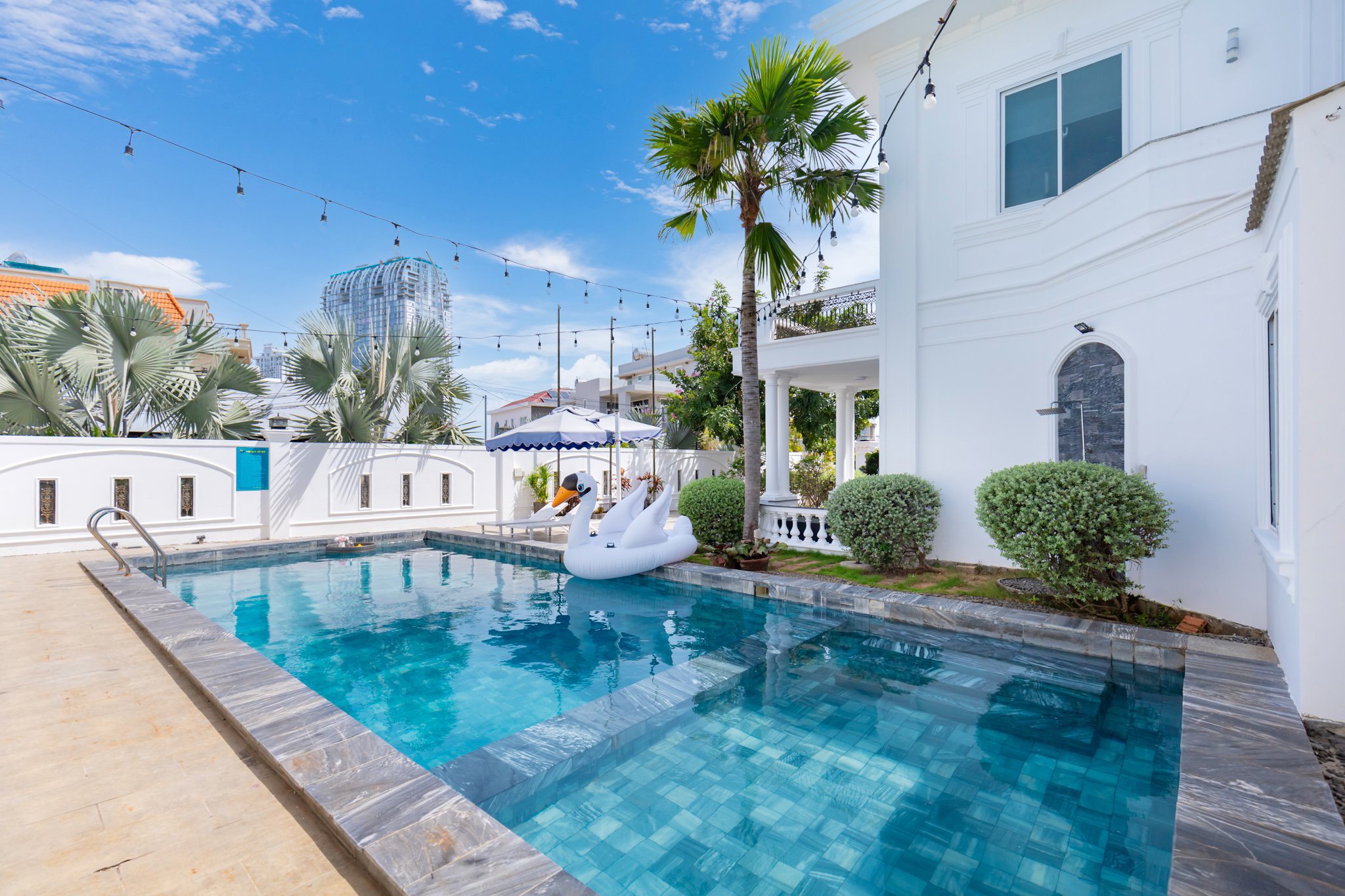 – Hồ bơi là điểm nhấn nổi bật của Villa với diện tích 80m2 , tại đây bạn thỏa sức ngâm mình trong làn nước mát trong xanh, vui chơi cùng bạn bè gia đình