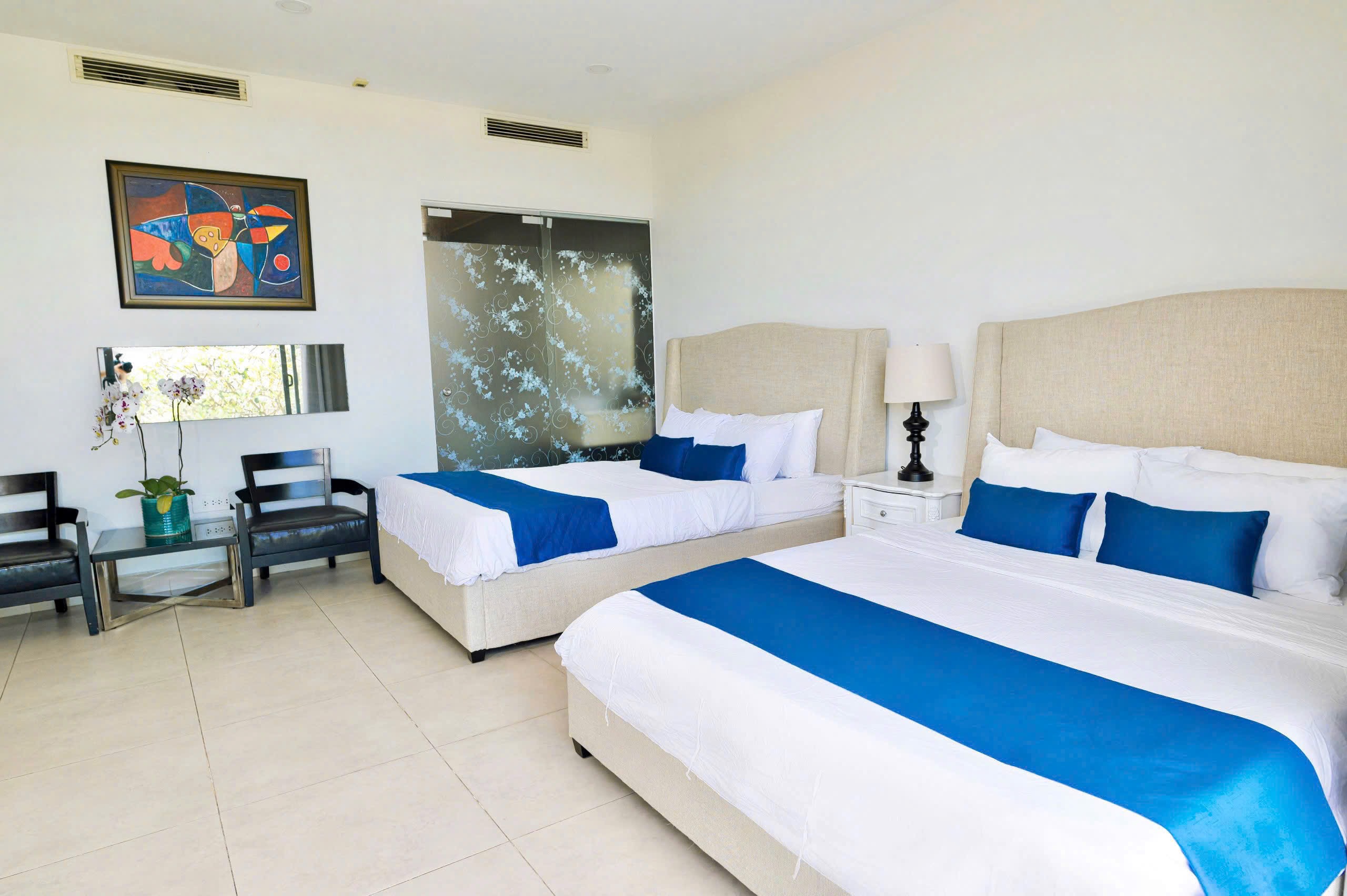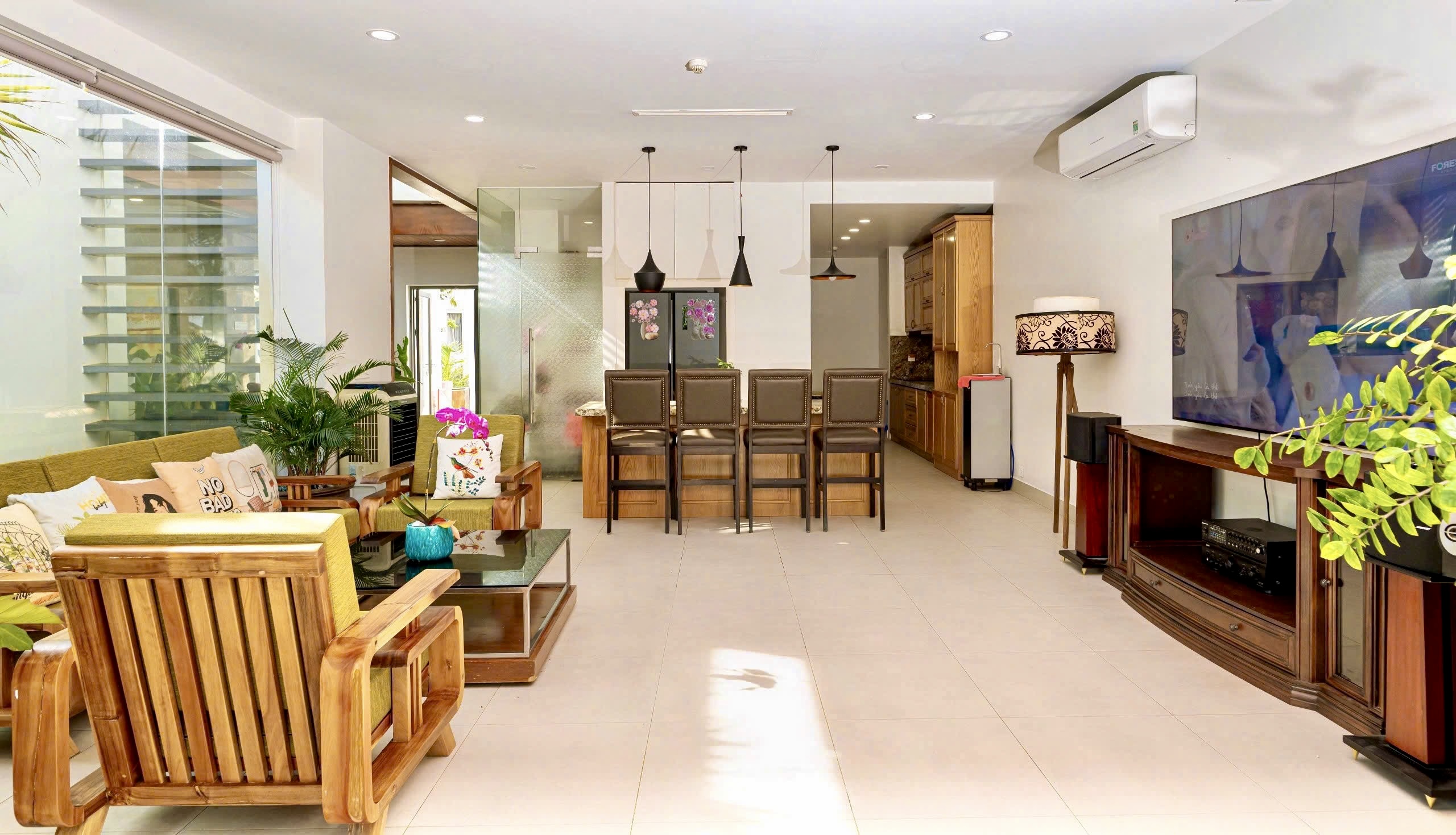 🎯Tầng trệt có 3 phòng, 4 wc: 2phòng giường 1m8, 1phòng 2 giường 1m6.